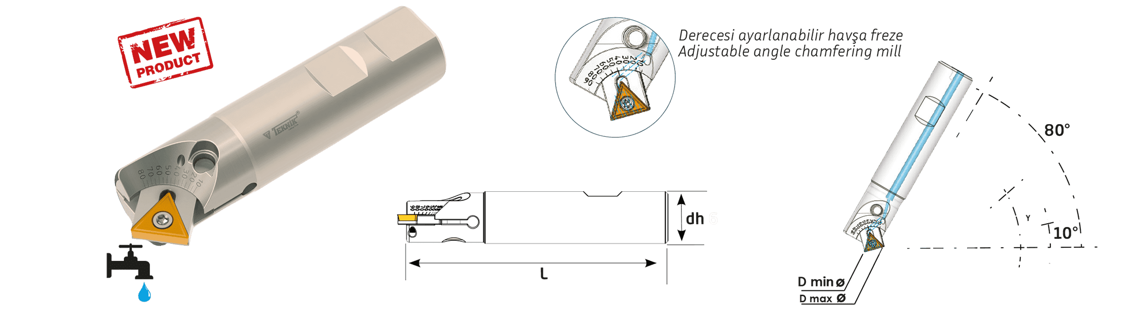 Zrážacia fréza nastaviteľná, základné telo vyrobené z kvalitnej kalenej ocele, priamo zapustená štvorstranná vymeniteľná doštička bez kazety pre vysokú stabilitu, umožňuje krátke doby obrábania vďaka vysokým hodnotám rezania, plynulo nastaviteľné od 0 ° do 90 °
